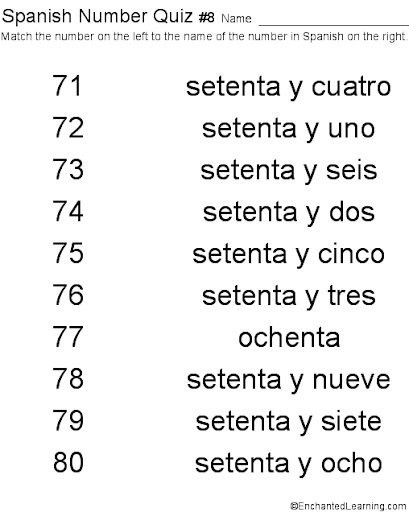 The document has moved here. Find out how to say any number in Spanish up to 9999. Look up the Spanish to English translation of 74 in the PONS online dictionary.